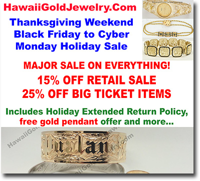 Hawaii Gold Jewelry.Com is full service online jewelry website offering Hawaiian Heirloom jewelry. Our mission is to provide quality Hawaiian jewelry products and services and practice integrity in all that we do. Over 900+ high quality Hawaiian 14K Solid Gold Jewelry items (made in Hawaii) are featured on our website. More...