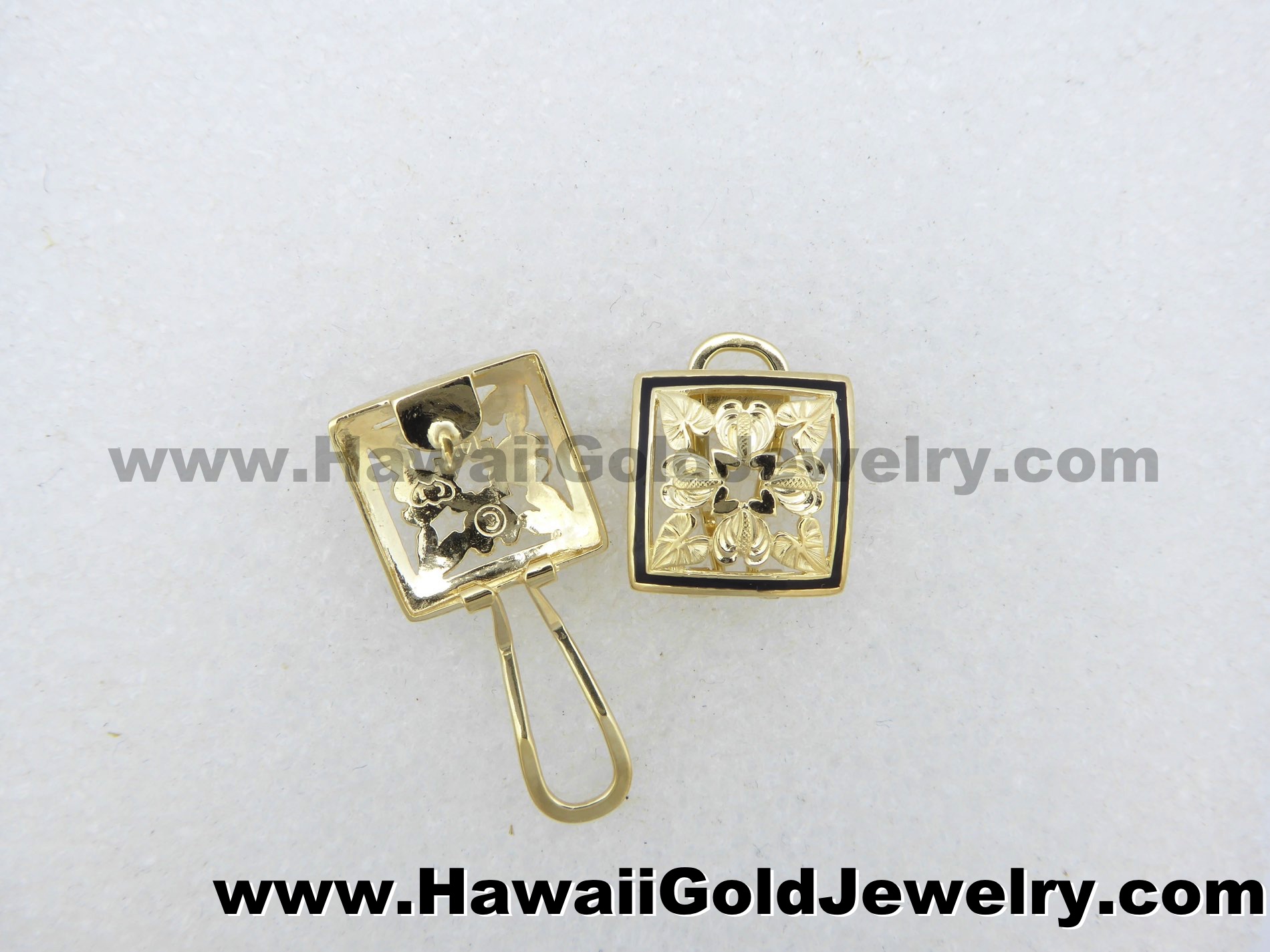 Design: Anthurium Flower Metal: 14K Yellow Gold Frame: Plain or Black Border Dimensions: 15x15mm, 18x18mm Sizes: Sm, Lg Shopping Cart Below Using Safe/Secure PayPal™