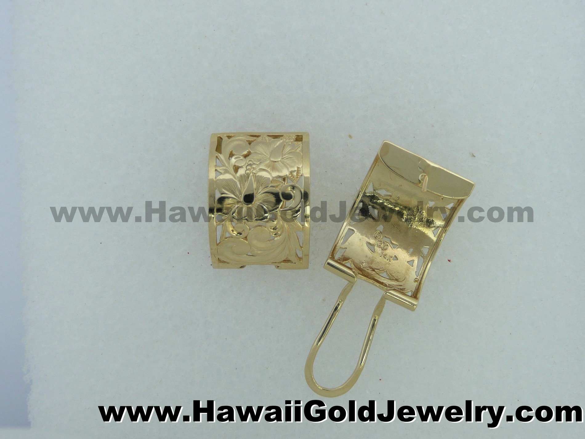 Design: Hibiscus Flower With Hawaiian Scroll Metal: 14K Yellow Gold Frame: Plain or Black Border Features: Clip, Post Width(s): 6mm, 8mm, 10mm, 12mm, 15mm Dimensions: 6x16mm, 8x18mm, 10x20mm, 12x20mm, mm Shopping Cart Below Using Safe/Secure PayPal™