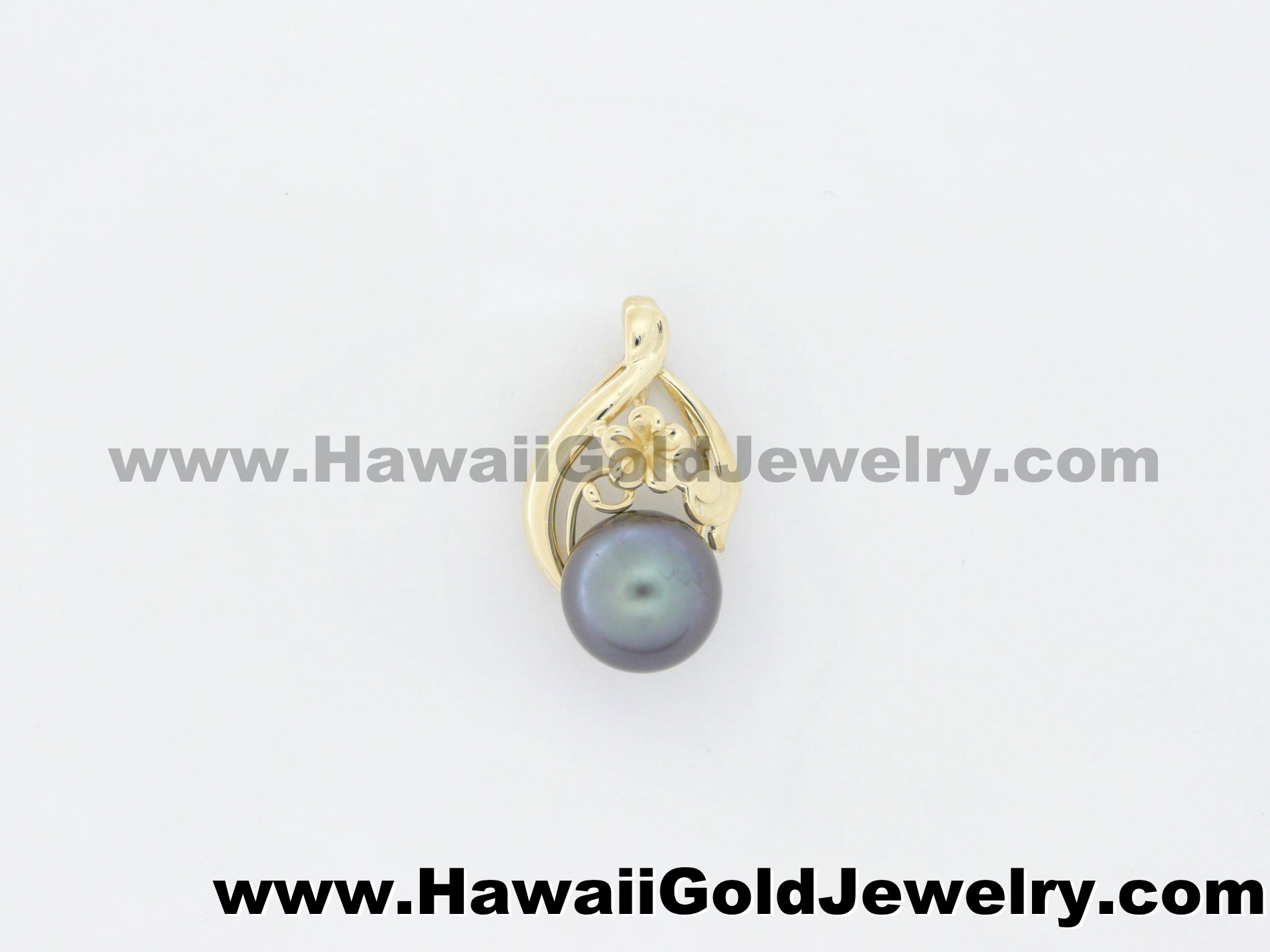 Hawaiian Black Pearl Pendant Single Scroll 13x22mm - Hawaiian Gold Jewelry