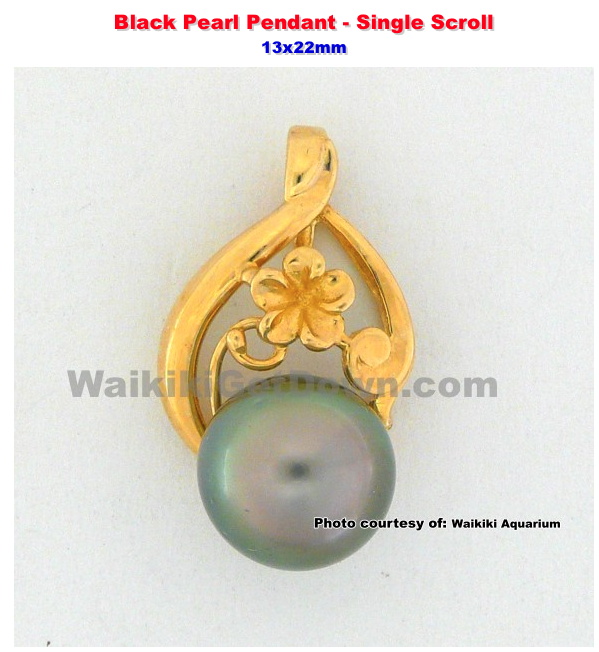 | Item #P0844 / Hawaiian Gold Black Pearl Pendant Single Scroll / Dimensions (WxH): 13x22mm / Ref#:731 PayPal Note: You do not need to have a PayPal account to pay via PayPal. You can just use your credit card on checkout. |