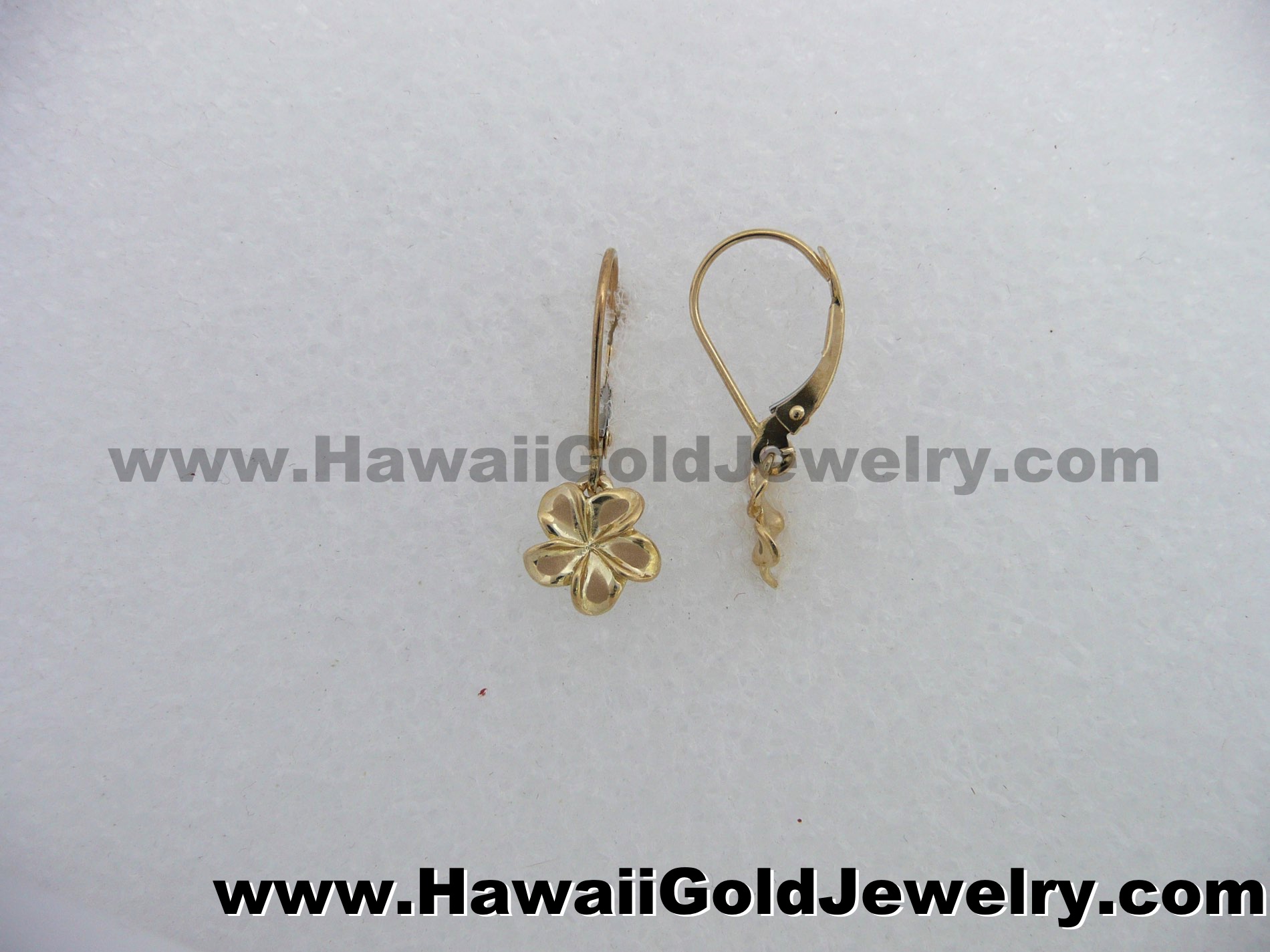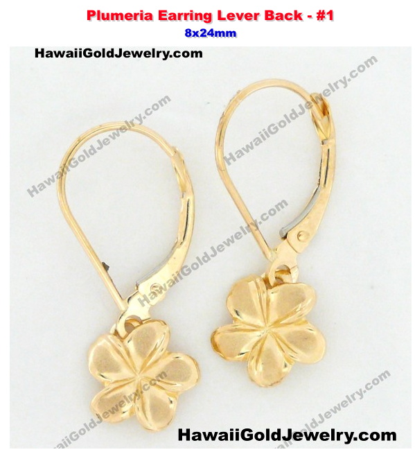 Hawaiian Plumeria Earring Lever Back #1 8x24mm - Hawaiian Gold Jewelry
