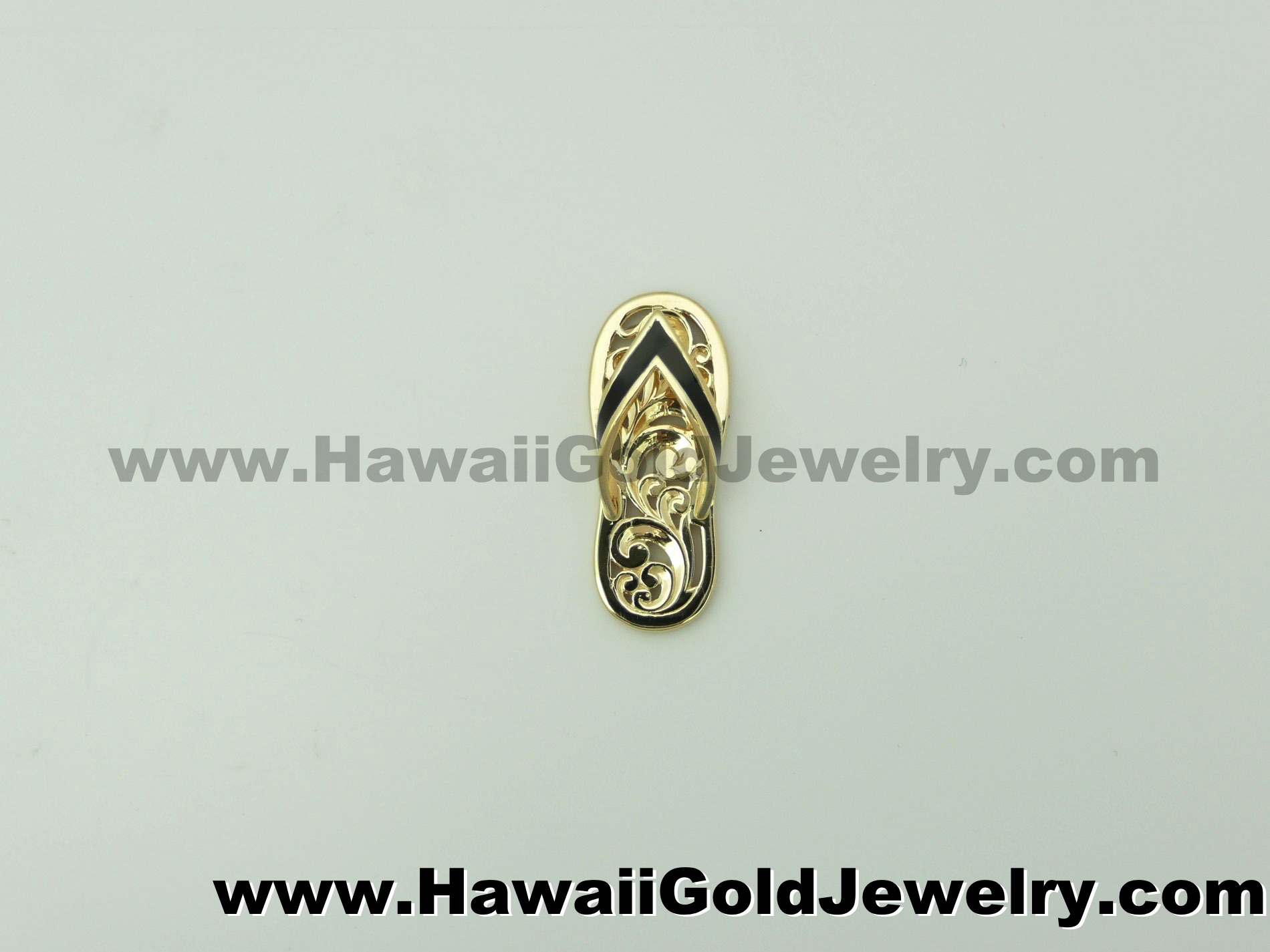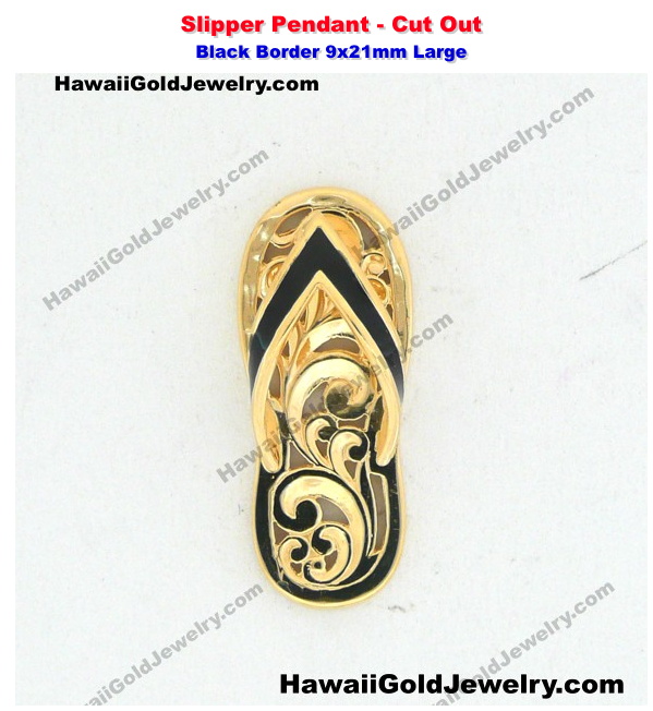Hawaiian Slipper Pendant Black Border Cut Out 9x21mm Large - Hawaiian Gold Jewelry