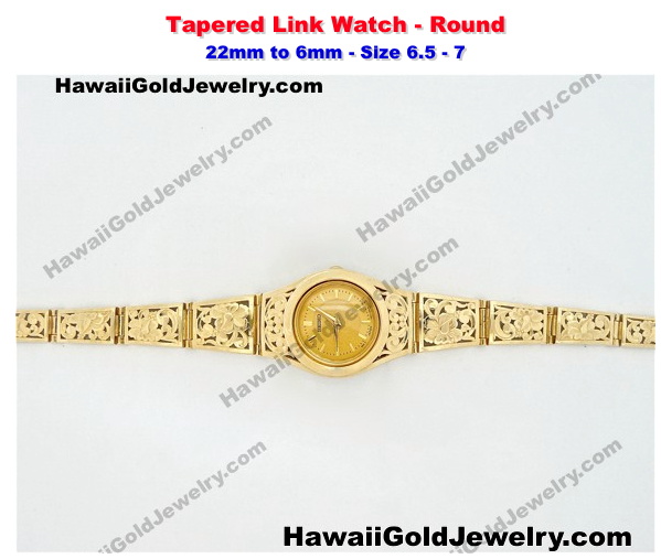 Hawaiian Tapered Link Watch Round 22mm to 6mm - Other sizes must call or email for estimate. Size 6.5 - 7 - Hawaiian Gold Jewelry