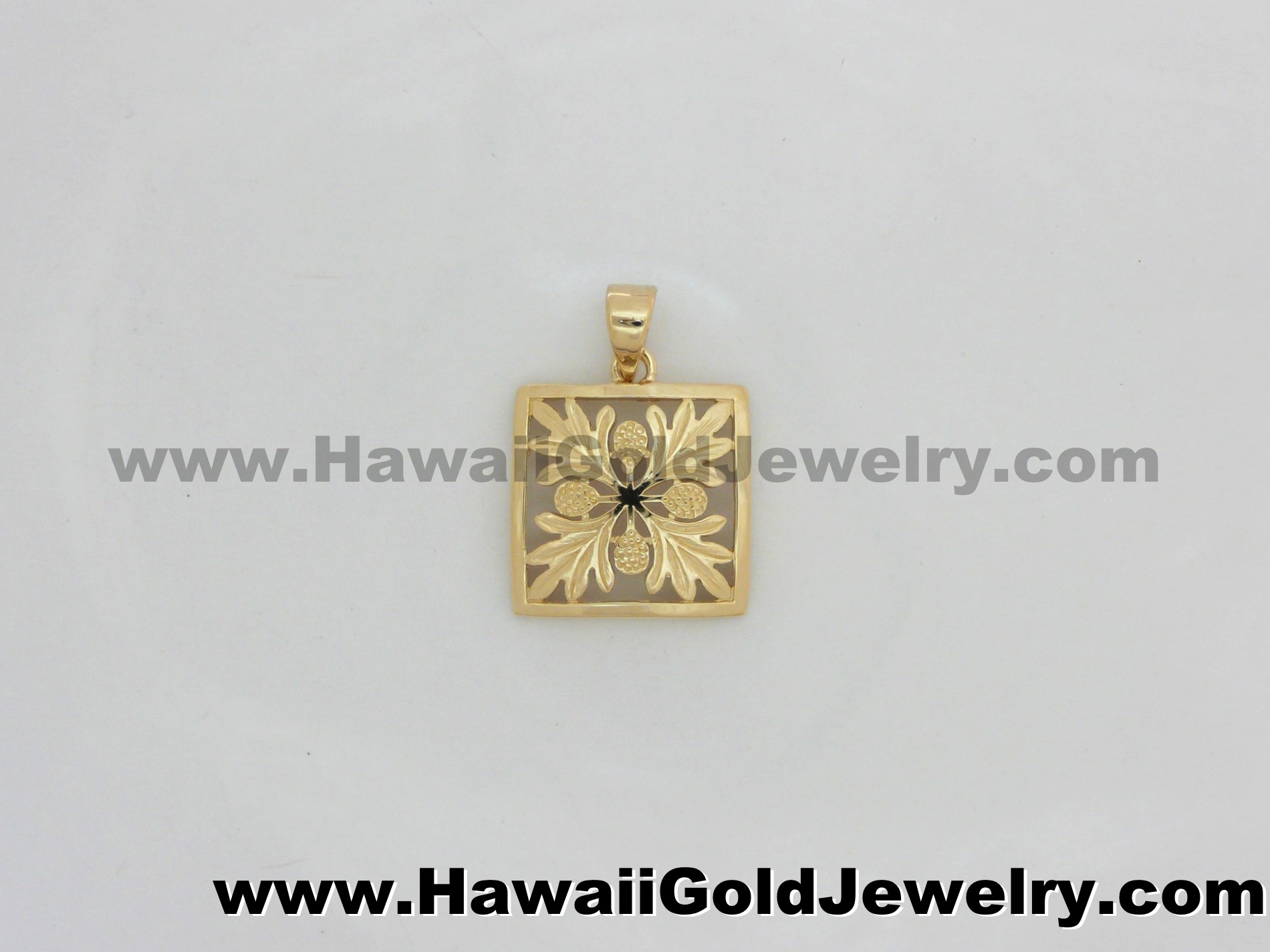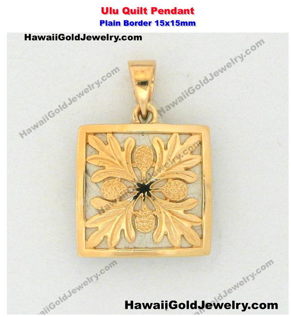Hawaiian Ulu Quilt Pendant Plain Border 15x15mm - Hawaiian Gold Jewelry
