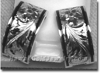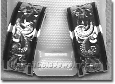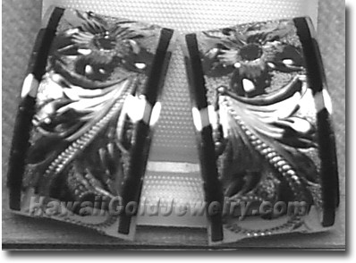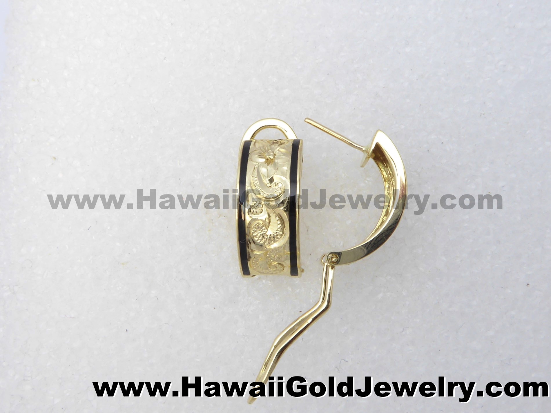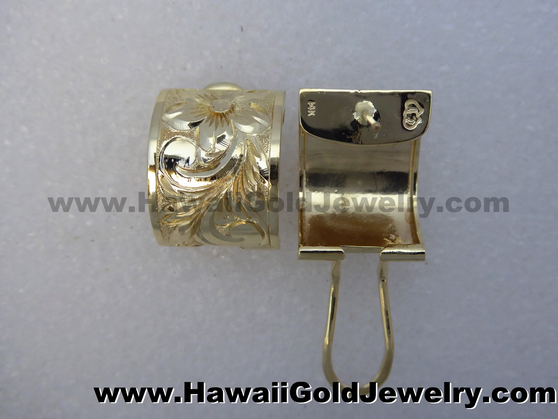 Design: Hand Engraved Plumeria Flower With Hawaiian Scroll and Leaves Metal: 14K Yellow Gold Frame: Plain or Black Border Features: Clip, Post Width(s): 6mm, 8mm, 10mm, 12mm, 15mm Dimensions: 6x16mm, 8x18mm, 10x19mm, 12x20mm, 15x20mm Shopping Cart Below Using Safe/Secure PayPal™