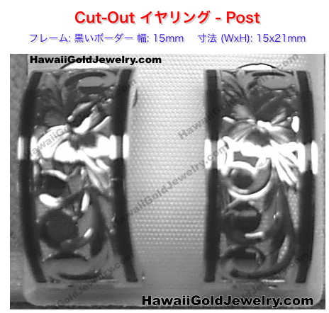 Cut-Out イヤリング - Post / フレーム: 黒いボーダー 幅: 15mm 寸法 (WxH): 15x21mm - ハワイアン ゴールドジュエリー