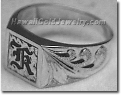 デザイン: Hand Engraved Plumeria Flower With Hawaiian Scroll 金属: イエロー・ゴールド / 14K Yellow Gold 主要な商品: w/2 Initials, w/Initials & Diamond 寸法: 8x16mm サイズ: (to sz 8)