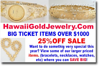 BIG TICKET ITEMS $1000+ (Back to the top) - View our latest news and new products. | BIG TICKET ITEMS -HAWAIIAN GOLD JEWELRY - 25% OFF BIG TICKET ITEM SALE - SELECT WATCHES, BRACELETS, NECKLACES